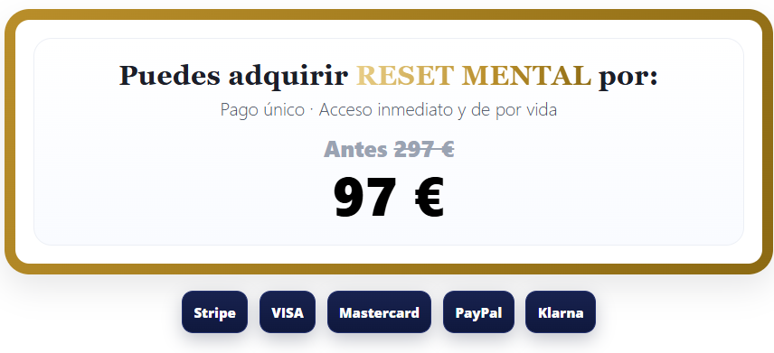- Método MindReset® exclusivo: psicología de la emoción + neuroplasticidad.